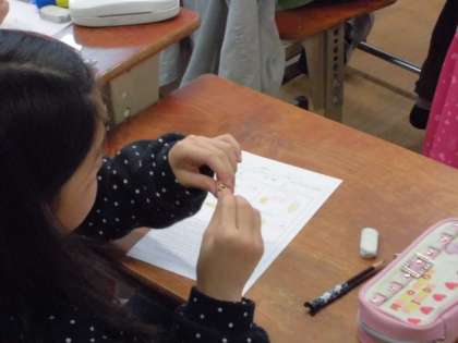 4年生になって初めての理科の授業は「季節と生き物(春)」です。春の生き物をこれから観察していきます。まず初めは,ツルレイシの観察です。種をじっくり観察して,記録をしました。今後は,この種を植えて1年間様子をみていきます。成長が楽しみです。