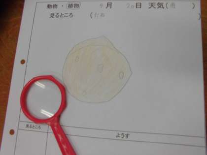 ヒマワリとホウセンカの種をじっくり観察して,記録をしました。これから花壇に植えていきます。「成長が楽しみ」と言っている子がたくさんいました。
