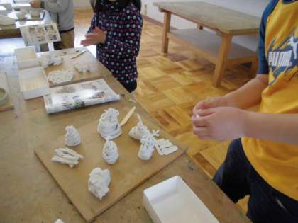 ねん土を使っていろいろな作品をつくりました。テーマは「ひも」です。ねん土でひもを作って何を作ろうか最初は迷っていました。しかし,作るものが決まると,どの子も真剣に作業をすることができました。どの子も創造性のあふれる作品に仕上がりました。