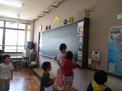 きのうの学校探検で1年生に学校中を案内し,お兄さんお姉さんぶりを発揮していた2年生。今日は,その学校探検の学習をふり返りました。それぞれのグループで工夫しながら1年生に教えていたんだなとがんばりを感じました。