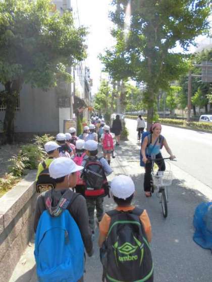 5月1日(金)は,大文字山登山の遠足でした。とても暑い日でしたが,みんな元気よく学校から大文字山まで歩きました。町の中の様子を見ながら歩いていきました。