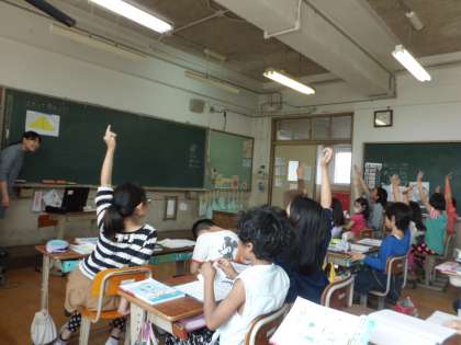 自分の考えを伝えるために,たくさんの手があがります。