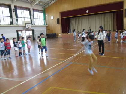 中間休みに全校で取り組んでいる大縄大会。回を重ねるごとに上手になってきました。3回目の今回は,144回という最高記録がでました。全員がタイミングよく入れるようになってきて,縄を振るスピードがだんだん速くできるようになりました。