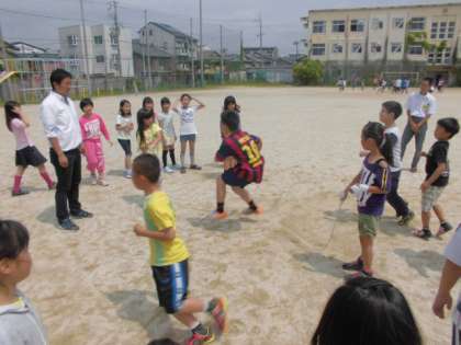 大縄跳びで,ついに記録を達成することができました。