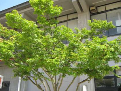 校庭のモミジやハナミズキなどの木々が,たくさんの美しい葉や花をつけています。とても美しい緑や桃色の花を見ていると心が穏やかになります。