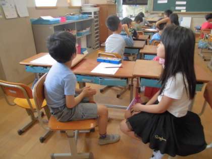 今年になって初めてのハートフルタイムでは「話の聞き方」について学習しました。友達の話の聞き方で,良い聞き方と悪い聞き方の違いについて話し合い,実際に隣同士で2つの場合の聞き方を経験してみました。