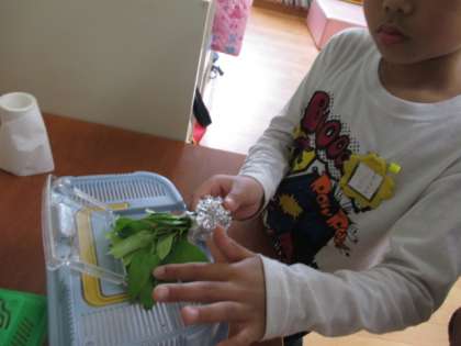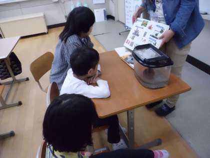 えのき学級の教室にはいろいろないきものがいます。かたつむり,アゲハの幼虫,ザリガニ。「いきものとなかよしになるにはどうしたらいいかな。」との問いかけに「えさをあげる。」「やさしくする。」と子どもたち。「やさしくするってどうすること?」と聞くと「水をかえてあげる。」「えさを忘れずにあげる。」「なでなでしてあげる。」との答えが返ってきました。