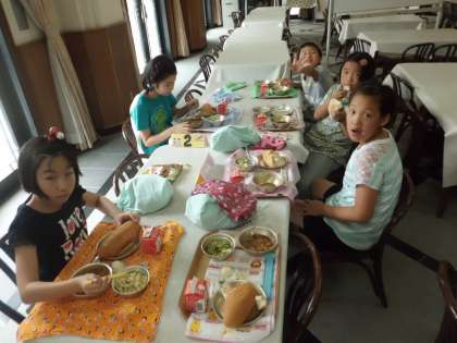 中には,はみ出るぐらいの量をはさんでいる子もいました。