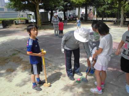 今日は,グランドゴルフをされている方々がおられました。子ども達は積極的にインタビューをしに行き,色々なことを聞くことができていました。また,少しグランドゴルフを教えてもらっている人もいました。教えてもらったことをもとに,次の学習につなげていきたいと思っています。