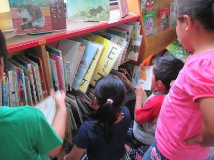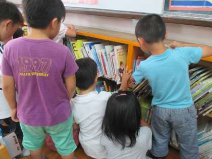 今日から読書週間が始まりました。図書委員の高学年が楽しいイベントを考えてくれています。今日は「しおり探しゲーム」に参加しました。やっと平がなが読めるようになった1年生なので,しおりを探すのが難しい子もいましたが,全員がしおりをもらって嬉しそうにしていました。早速,自分の読んでいる本にはさんでいる子もいました。