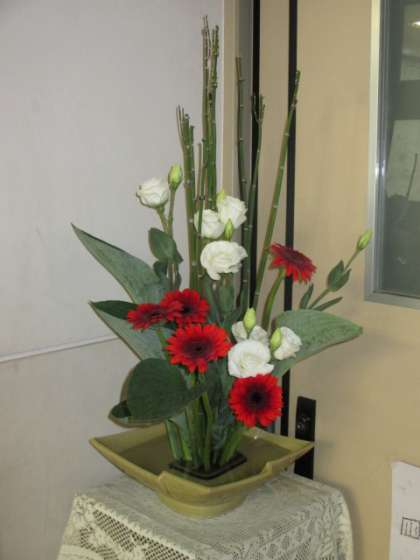 今年度1回目の生花教室が行われました。今日のお花は,トクサ,白トルコキキョウ,ガーベラ,葉です。今日は,参加者が少し少なかったようです。途中からの参加も受け付けます。参加希望の方は,職員室の山川先生に連絡ください。来月は7月4日(土)です。