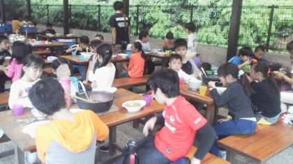 一生懸命作ったカレー。どのグループも大成功。とってもおいしいカレーに出来上がりました。自分たちで作ったカレーは最高においしかったことでしょう。口いっぱいにカレーをほおばっていました。