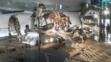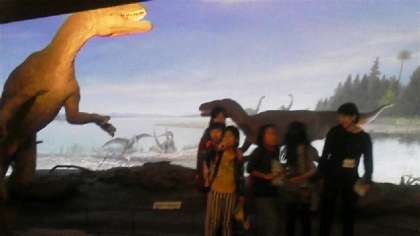 お弁当の後,グループごとに恐竜博物館見学をしました。大迫力の展示に驚いていました。恐竜がいた時代にタイムスリップした子どもたちでした。
