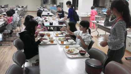山登りの後の夕食です。みんなしっかり食べていました。きっとおなかがへっていたのでしょう。反省会もおこないました。今日の夜は疲れもあって,みんなよく寝るでしょう。