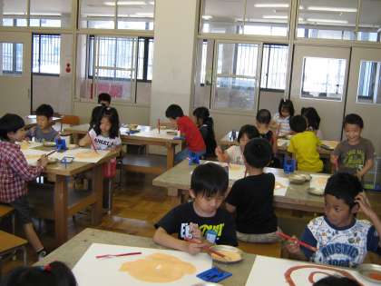今日は図工の学習で初めて図工室へいきました。そして,『はみがきがんばろう!』の絵を描きはじめました。絵の具をつかって,自分の歯をみがいている姿を鏡で見ながら描きました。とてもみんながんばって描くことができました。