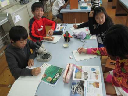 理科の時間に火山灰を観察しました。これまでにも何回も顕微鏡を使う機会があったので,多くの子がすぐにピントを調整して,はっきり見えるようにしていました。顕微鏡の使い方について個別の試験も行いました。知識だけでなく,技能もしっかりと身につけてほしいと思います。