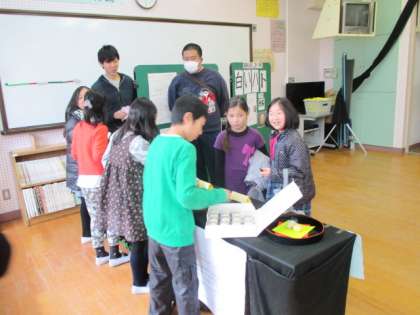 もちつき大会に合わせて,えのき学級の「はし置き」販売,5年の「和菓子」販売も行いました。初めての試みでしたが,いずれも完売で,子どもたちも大喜びでした。