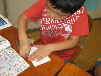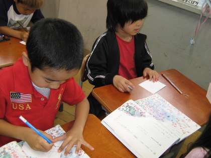 国語で『スイミー』を学習しています。今日はみんなで音読をしてから,ペープサートを作りました。真っ黒のスイミーや赤い魚を下がきし,色を塗りました。次回の学習からは,今日作ったペープサートを使って学習を進めていきます。