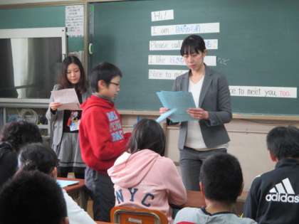 高野中学校より英語担当の先生3名に来ていただき,6年生に英語の授業をしていただきました。小中連携の取組の一つとして,毎年この時期に行っています。