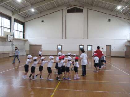 2年生で初めての体育です。今日は50メートル走の予定が,雨のため,体育館で活動しました。じゃんけん列車やペアじゃんけんなど,みんなルールを守って上手に活動できました。これからも,みんなで楽しく体育の学習をしていきたいと思います。