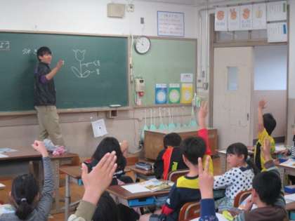 理科では,いろいろな春の植物や生き物を見つけてきました。今度は,植物を育てていく予定です。お家でもいろいろなものを育ててきたようで,たくさん発表していました。