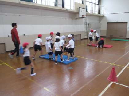 今日の体育の授業では、体ほぐしの運動をしました。じゃんけんに勝つと次の島に行ける「ペアじゃんけん」や風船を使った活動などを通して、運動の楽しさを味わいました。友だちとの交流が良く出来て、みんな笑顔でした。