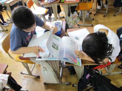 理科の学習のまとめとして,学習してきた中で興味や疑問に思ったことを自分たちで調べる学習をしました。子どもたちは,「雲のできかた」や「雨のふりかた」など各々調べていました。