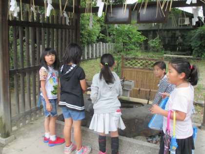 今回は、田中神社方面へ行きました。一人一つの方位磁針を持って,学校からどの方角に進むのかなどを確かめながら行きました。田中神社からの帰り道は東大路通を通り,どんなお店があるのかなどを調べました。私たちの住んでいる町を調べ,それを地図学習につなげていきます。