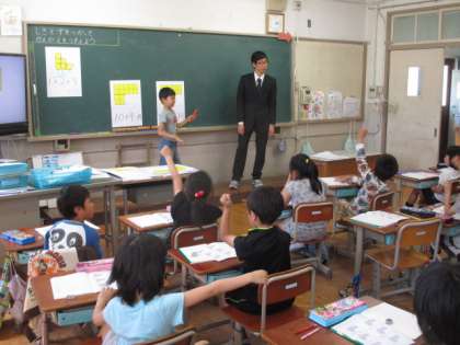 今日の算数の時間は、授業参観でした。色々な形に並んだ物の数をどのように数えるか、みんなで学習しました。同じ答えなのに、色々な式で求められることが分かりました。たくさんの人の中でしたが、みんな元気よく発表できました。