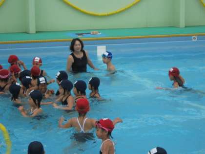 プール学習がありました。1 水なれ 2 めあて1『水かけ・またくぐり・ロケットジャンプ・だるまうき・ラッコうきのかくにん』 3 めあて2『めあて1のしゅもくにチャレンジ』みんなそれぞれのしゅもくに,せっきょくてきにチャレンジしていました。とちゅうでカミナリがなってきたので早くおわりました。