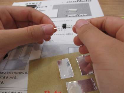 小さな部品を組み合わせるのは難しく,たくさんの方の協力を得ながら製品を完成させていました。音が鳴り出すとみんな耳元へオルゴールを持っていき,音楽を聞いて喜んでいました。ソーラーパネルにしっかり光を当てて,音を鳴らそうとしていました。