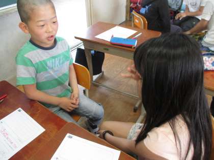 授業の後半は,隣の友だちと「聞く側」「話す側」に分かれて話を聞き合いました。体を話している人の方に向けたり,上手に相づちを打ったりしながら話を盛り上げていました。この時間だけでなく,日常に活かせるように繰り返し,意識していきたいですね。