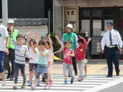 今年度も,十名を超える地域・保護者の皆様のご協力で,実際に学校の外へ出ての活動を行うことができました。登下校時をはじめ,交通事故から自分の身の安全を守ることができる力を身に付けてほしいと思います。