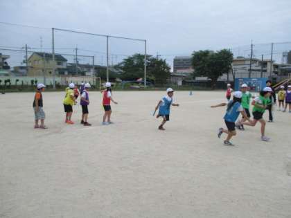 体育の「リレー」学習では,グループごとに分かれて練習をしています。バトンパスを練習するグループもあれば,ダッシュの練習をするグループもあり,それぞれが自分たちに必要な練習を相談しながら活動しています。今日は最後に全グループで競争しました。応援にも熱が入ります。