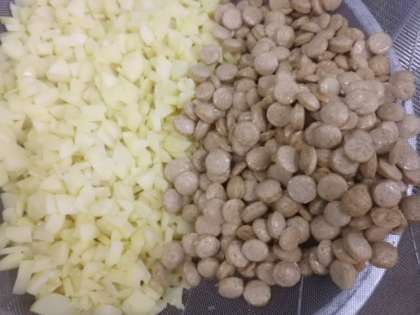 「ソーセージと野菜のいためナムル」は,まず,じゃがいもとチキンフランクフルトを油で揚げます。それから,キャベツ・にんじん・きゅうりと一緒にサラダ油でいため,さとう・しょうゆ・酢で味つけし,最後にすりごまを加えて仕上げます。