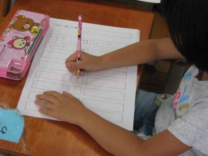 こくごのがくしゅうで,きのうは「は」と「を」のつかいかたのがくしゅうをしました。きょうは「へ」のつかいかたのがくしゅうをしました。こうえん「へ」あそびにいく。どうぶつえん「へ」いく。などいろいろなぶんをつくりました。
