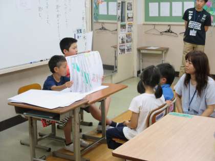 「かいけつゾロリ」のお話を手作りの紙芝居にし,子どもたちが読み聞かせをしました。聴いている人にお話が分かるように,ゆっくりと気持ちを込めて読むことができていました。読み聞かせの後には,そのお話についてのクイズに正しく答えることもでき,しっかりとお話を聴けていることも分かりました。