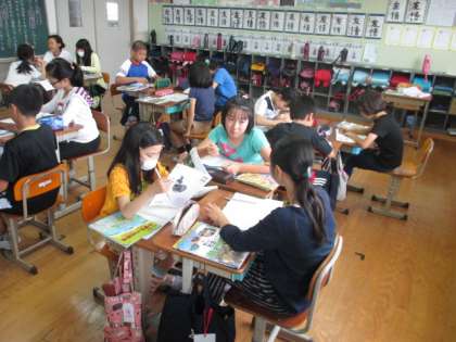 社会の学習の様子です。今と昔(平安時代)との違いについて,調べる計画をグループで立てています。自分たちで調べることを決め,計画を立て,答えを自分たちで導き出すことを大切にしています。