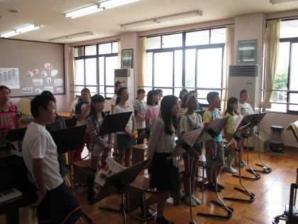 音楽室から聞こえる子どもたちの声は,とてもきれいです。姿勢・口の開け方などに気をつけ,歌っています。
