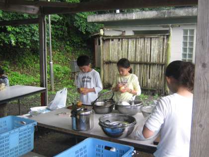 7月13日(火)から若狭湾自然の家に長期宿泊学習に出かけました。13日は、入所式を済ませた後、水泳をしました。海の水がきれいなこと、魚がいっぱいいることに驚きました。その後、野外炊事でカレーを作りました。小雨が降っていましたが、特に影響もなく、各班おいしいカレーができました。いよいよ宿泊学習の始まりです。