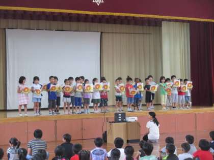今日は朗読発表会がありました。これまで練習してきた成果を発表する日です。朗読するものは、みんなの大好きな「おむすびころりん」です。教科書がなくても、みんなすらすらと覚えるまで練習しました。