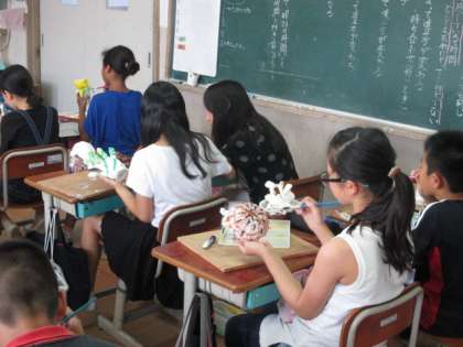 リキッド粘土がかたまりました。思ったような形になった子もそうでない子もいますが,かたまった形から,いろんな想像を広げることができます。色をぬることで,さらにいい作品になってきました。