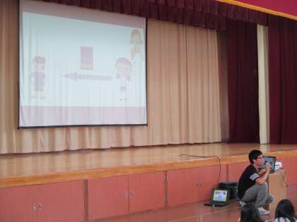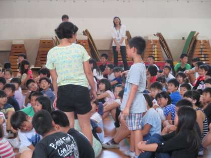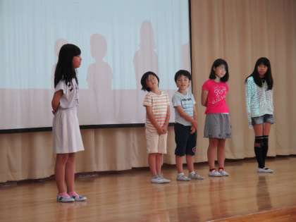 1時間目にはまとめの会を行い,4月からの振り返りと夏休みの過ごし方についての話がありました。児童会からは,寸劇を交えて,夏休みに注意すべきことを全校に向けて発信してくれました。