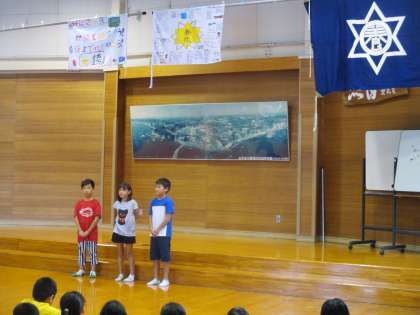 2日目の初めは、同じ日程で宿泊している光徳・養徳・養正の3校が集まって朝の集いがありました。それぞれ校歌を歌ったり、学校紹介をしたりする中で交流することができました。