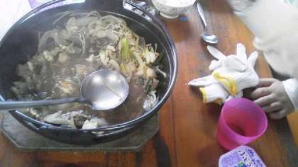 心配されていた天気は,子どもたちのパワーで晴れになりました。思い切り野外活動を楽しんだ子どもたちです。2回目の野外炊事に挑戦です。メニューはすき焼き風煮。昨日よりどのグループも手際よくできました。自分たちで作った料理の味は格別です。「おいし〜」という言葉があちこちから聞こえてきます。