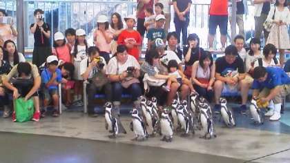 鳥羽水族館をグループで仲良く見学しました。可愛いペンギンの散歩も楽しみました。