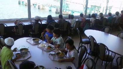 水族館のレストランで、グループごとに昼食をとりました。