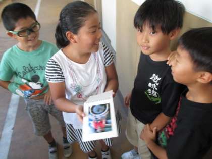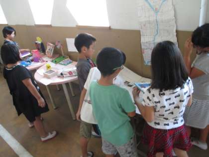 少し遅くなりましたが,夏休みの作品の鑑賞会をしました。はじめに,クラスみんなの前で見どころを伝え,友だちの作品を見る時間を作りました。鑑賞中は,友だちの作品の説明書を読んだり,質問をしたりして,作品に対する理解を深めることができました。自由参観の際も展示しているので,ぜひご覧ください。