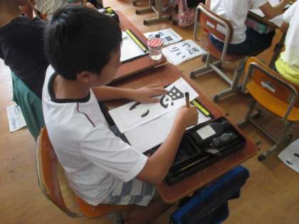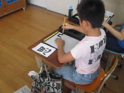 書写の時間です。思わず写真をとりました。姿勢が本当にすばらしいと思います。授業中,いつもこういう姿勢だといいですね。