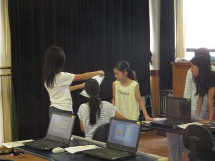 自由研究の賞状作りです。友だちの作品のよいところを賞状としてコンピュータで作りました。もらった人は,みんな笑顔です。友だちにほめてもらえるとうれしいですね。